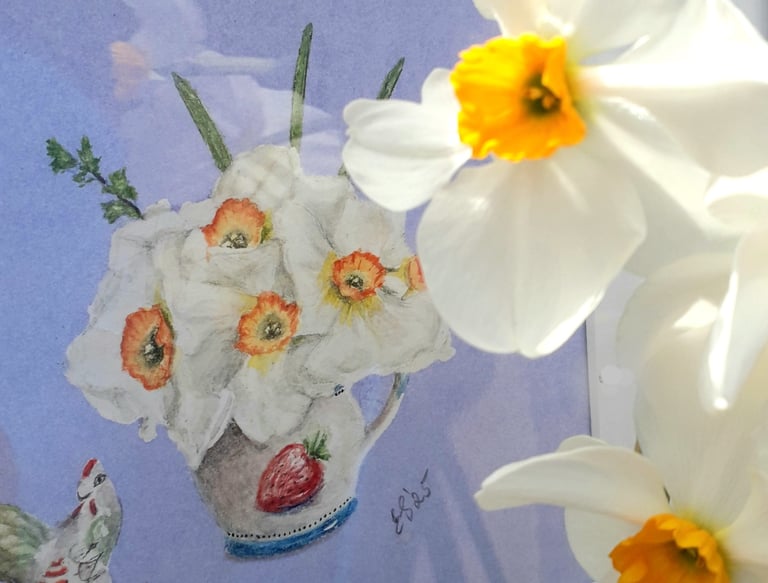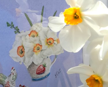 Years of gardening inspire my art. Most of the flowers in my paintings are grown alongside vegetables in my garden in the East Riding of Yorkshire. I previously had an allotment in South West London for twenty years, which was a place where I could also observe a variety of bird life. Each year brings surprises and wonder in the garden. I try to sow new varieties of flowers that I can paint and never tire of the joy and beauty that both native and non-native species bring.