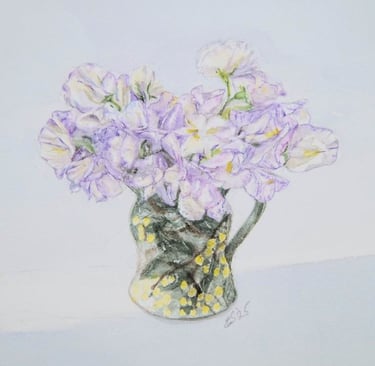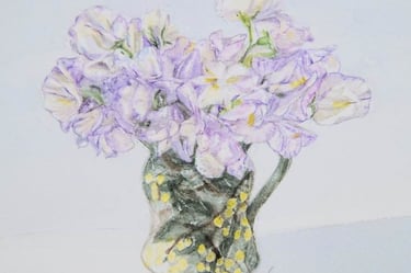 Years of gardening inspire my art. Most of the flowers in my paintings are grown alongside vegetables in my garden in the East Riding of Yorkshire. I previously had an allotment in South West London for twenty years, which was a place where I could also observe a variety of bird life. Each year brings surprises and wonder in the garden. I try to sow new varieties of flowers that I can paint and never tire of the joy and beauty that both native and non-native species bring.